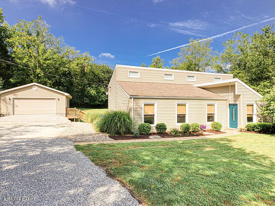 Check out this beautiful split-level home nestled among 1.5 acres surrounded by lush trees and private backyard. This 3 bedroom, 2 full bath home has an open floor plan and many upgrades - professionally painted interior, updated bathrooms, beautiful wood flooring, new light fixtures, refinished kitchen cabinets with granite countertops, tile back splash, and new microwave and dishwasher (2021). The living and dining rooms have vaulted ceilings which contribute to the expansive feel of the main living area. There is ample storage throughout with a walk-in pantry in the eat-in kitchen, and two closets in the primary bedroom. In the lower level is a walk-out family room with fireplace, and a full bathroom. There is a sliding barn door at the entrance of the family room, which closes off
