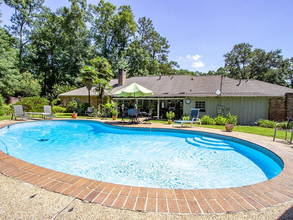 Midtown Area Compound Consisting of Single Story Home (4bed/3bath), Pool House (1bed/1bath) AND Pristine Pool Surrounded by Private Chicago Brick Walls & Iron Gates! Esteemed Midtown neighborhood developer & builder Herschel R. Shattles chose these 2 lots to build his personal residence on - sparing no expense in design, construction, nor quality of materials - IT SHOWS!It's Cul-de-sac location means no through-traffic like much of Midtown has to endure. Upon approach, you'll notice the low maintenance, tidy yard & large driveway to host a family of vehicles as needed.This home invites you into an open floorpan, abundant natural light, high ceilings, exposed beams, brick fireplaces, formal & casual living rooms & updated kitchens & baths! Come see the massive covered porches!