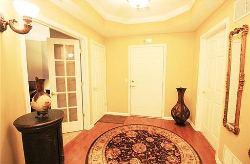 WOW! Elegant Dehart Model-Unit Offers: 3rd floor, foyer, 2 BR, 2 Full Bath, Laundry, Library & Formal Dining Room, Kitchen w/Oak 42"cabinets, granite counter tops w/breakfast bar, Great Room w/9'ht dramatic windows, crown molding, Bright Master Suite w/WIC, Soaking tub, Shower, Washer & Dryer included. 1 car garage & 1storage space. Elevator. Visit Lux ClubHouse w/Pool, Gym. 55+ Adult Community.