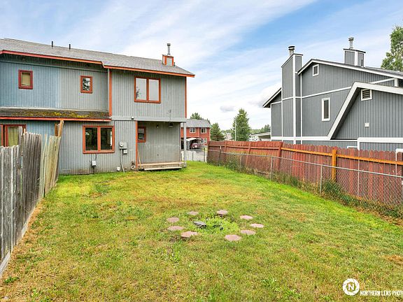 Remodeled Townhome with a large private fenced yard! No HOA Dues! Chugach Range Views, updated baths, new carpet in the bedrooms, laminate flooring. Three bedrooms upstairs. Convenient Centrally Located, close to unlimited hillside activities, biking, skiing and hiking.