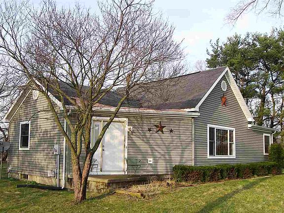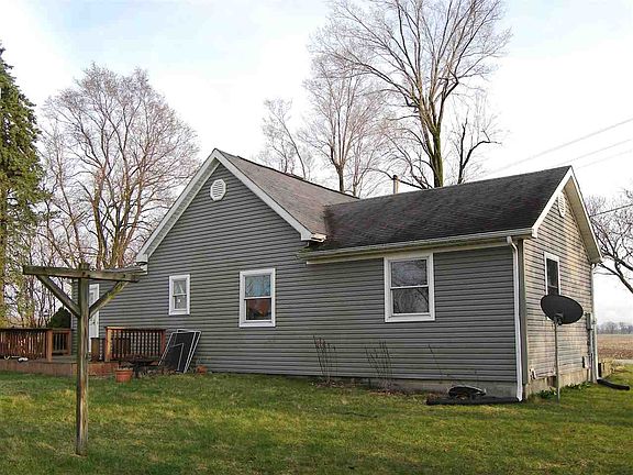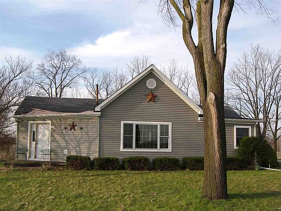 Immediate possession available with this affordable vinyl sided 2 bedroom 1.5 bath country charmer on a tree lined half acre lot just east of Winona Lake. Front entry room, generous sized living room, large eat-in kitchen, home office, rear laundry room and a partial basement for mechanicals and storage. Updated kitchen and bathrooms, insulated windows, modern breaker box, 4 inch well, nice asphalt driveway and parking. Rear deck overlooking the rural farm fields. Detached 20x24 garage has separate breaker box. REMC electric, NIPSCO natural gas, zoned agricultural, low taxes.