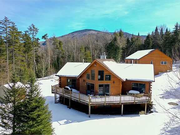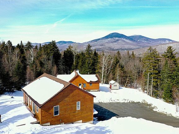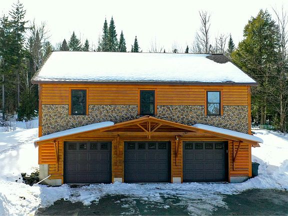 Just 15 miles from the Canadian border and 10 miles to Jay Peak Resort sits the very desirable and sought-after Hazen's Notch Road (featured in Yankee Magazine). This custom-built Chalet-style Log Home (2004) sits on a very private 14.55-acre lot. An open floor plan and stunning living room with cathedral ceiling, tongue & groove pine paneling and a cozy fireplace with wood-burning insert create an inviting and expansive atmosphere. The open kitchen includes a breakfast bar, built-in table with benches and porcelain tile flooring featured throughout the home. There are two bedrooms and two full baths located on main level. The main bedroom suite has a large walk-in closet with built-ins, bathroom with Jacuzzi tub and double sinks, as well as a private deck. The lower level is unfinished. It currently has 4-5 rooms framed out and is a walk-out with plenty of daylight flooding in. The large 3 car garage has ample storage and high ceilings. On the upper level of the garage is a two-bedroom, 1.5 bath apartment. Bring your own plans to finish the kitchen which is open to the living room. This apartment could be a home office or add two additional bedrooms of on-site living space. Many additional features include being sold 'fully furnished', 6-panel wood doors, multi-zone oil heating in the house, and propane heating in the apartment. A shed is perfect for gardening, a workshop or storage. This home checks all boxes as is. A must-see to appreciate.