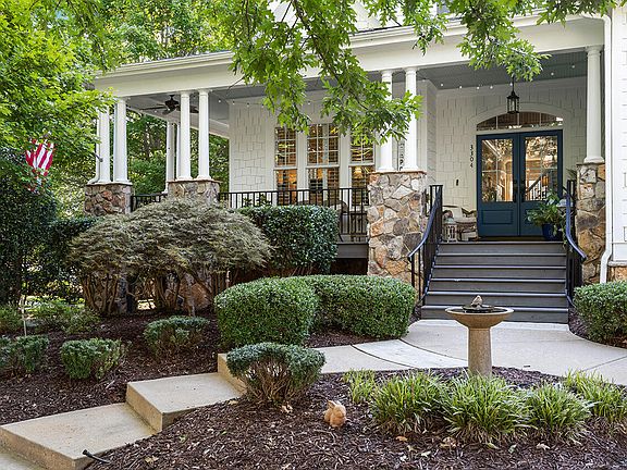 IMMACULATE, move-in ready Magical Place in coveted Bedford Estates. Southern charm meets modern functionality in N. Raleigh's storybook Bedford @ Falls River. This elegant, custom beauty checks ALL the boxes for creating new memories! Vibrant, welcoming indoor and outdoor living space includes: Main level luxurious primary retreat, plus 2nd level primary bedrm-perfect for teens or multi-generational living. Chef's kitchen with quartz countertops & huge island, SS appliances, gas range, dble ovens, two pantries. Cozy gathering area leads to private screened-in porch with stone FP & deck. Large outdoor covered oasis with built-in entertaining area is a must see! 2nd lvl has 3 add'l spacious bedrms + 2 full baths w dbl vanities. Sun-filled craft/flex room with lrge work space, wine fridge & storage galore! Large 5th BR could easily be used as an add'l flex space. Fenced-in yard surrounds the garden and tucked away potting shed. Roof (2021), HVAC units (2019),Tankless water heater (2024),2nd lvl Furnace (2022),Fence (2024) Welcome Home!!