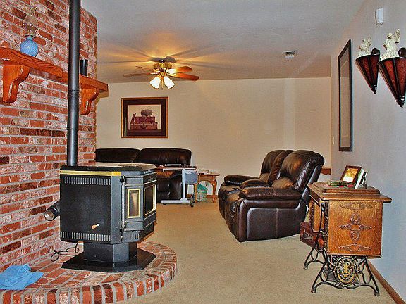 • Interior Features: Ceiling Fans, Window Coverings, Pellet Stove, Flooring- Carpet, Flooring- Tile, Alarm/Security System