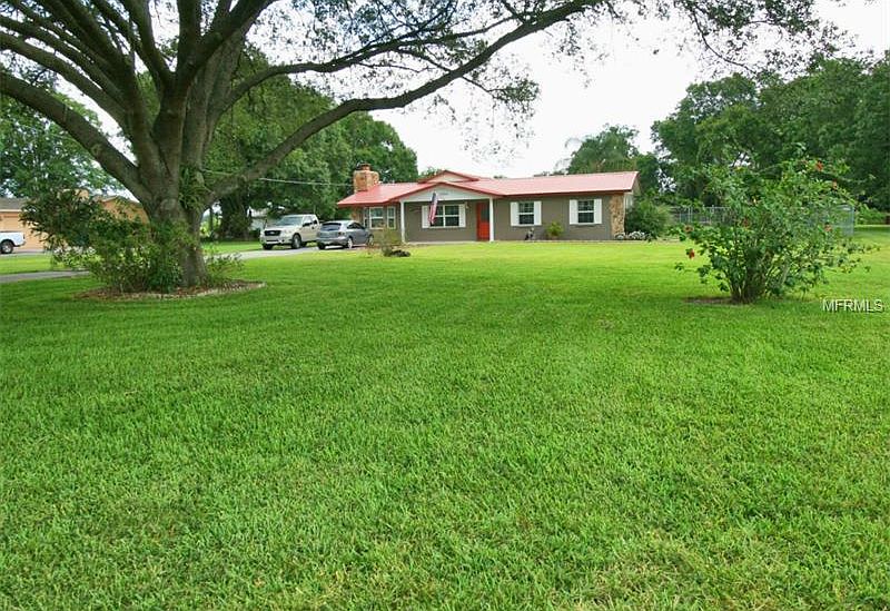 Cute 4 bedroom/ 2 bath home situated on 1 acre, with a pool. The front of this home is accentuated with stone and the yard has lovely landscaped accents. The entire home has been completely updated with new windows, paint, cabinets, Quartz countertops, door knobs, and new stainless steel appliances. Beautiful porcelain tile flooring thru out the entire home. The living area boasts a HUGE stone fireplace and a bay window looking out to the front porch. The kitchen features new cabinets and countertops plus a dinette. Both bathrooms have been completely remodeled. Step out the back door to the lanai overlooking your sparkling pool. The pool deck has a picket fence, while the rest of the backyard has a chain link fence. A detached 20x24 workshop/ garage sits behind the home, the workshop is complete with running water and electricity. The home has Brand new A/C unit, and duct work! Home also features reverse osmosis system and R30 insulation. Metal roof is less than 10 years old. Home is located minutes from I4 or HWY 60.