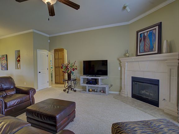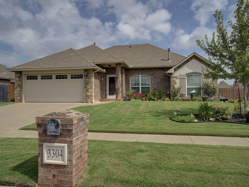 BETTER THAN NEW! Absolutely perfect condition with a ton of upgrades that include granite counter tops in bathrooms with new sinks and faucets, gorgeous landscaping, privacy fence, additional storage in bathrooms and living, new tile in kitchen, utility room, master bathroom guest bathroom, entry and fireplace, New premium carpet in living room, New air compressor and added additional radiant barrier insulation resulting in very low utilities. Storm door, guttering and outside Christmas light outlets. Large storage building stays. This one will not last long Agent related to seller