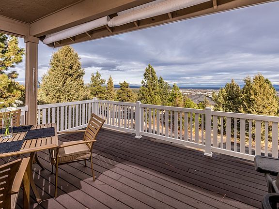 This Awbrey Village Tudor-style home is so livable with an open floor plan, master & 2 of the bedrooms on the main floor, & tons of garage & home storage space. Enjoy easterly mountain views & sparkling city lights from the large covered deck with outdoor dining & entertaining space. Convenient office nook off the kitchen; vaulted great room ceiling & large windows; ideal kitchen w/ large island & counter with bar stool seating, as well as casual dining area. Super friendly neighborhood is the bonus!