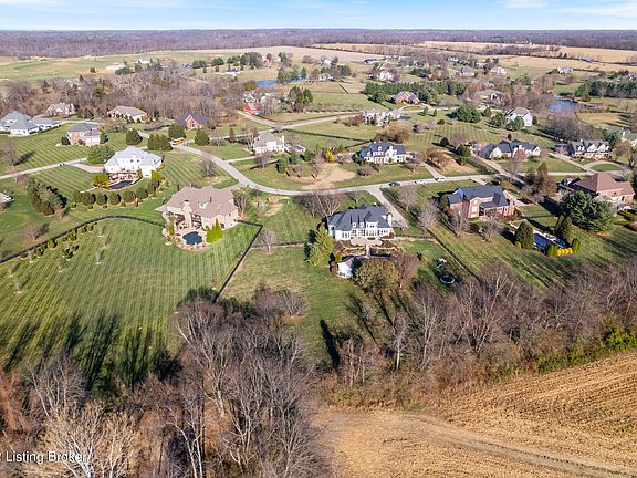 Beautiful custom-built home with nearly 6k finished square feet on 2.3 acres in the Overlook on Covered Bridge. Just over the Oldham County line! Enter through the 2-story foyer to the open great room. Two sets of French doors lead to the screened in back porch which overlooks the gorgeous patio, saltwater, self-cleaning pool and cabana. No expense was spared with the custom landscaping, making this a backyard oasis. The brick, stone and hardie shank exterior is freshly painted. The eat-in kitchen features custom cherry cabinets, granite counters & natural stone backsplash. Large laundry/mudroom with sink & walk in pantry are just off the kitchen. Hearth room has custom built-ins and another door that leads to the patio. First floor Primary bedroom has another door to the screened in porch and a full bathroom with 2 walk-in closets, a natural stone shower and jacuzzi tub. There is an additional bedroom suite and half bath on the first floor. Upstairs, you will find another bedroom suite with a full bath, large walk-in closet, built in shelving and bonus room. Two more bedrooms and another full bath complete the second floor. The finished basement includes an exercise room, family room, flex room currently set up as a 6th sleeping space, full bathroom and kitchenette. The basement bathroom and kitchenette feature granite counters and slate and natural stone floors. The family room features a natural gas fireplace. There are also 2 large closets and 2 unfinished storage areas. This turnkey home has it all!