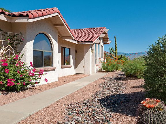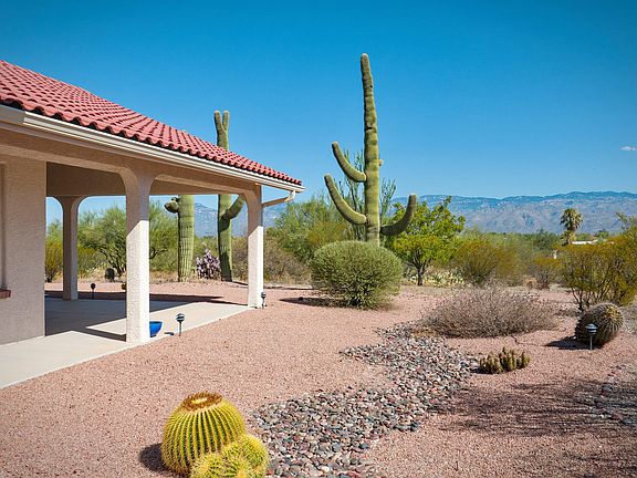Custom home built for original owners boasts really stunning Rincon and Catalina Mtn views. Walking distance to Saguaro National Park or cycle Old Spanish Trail. Set on 3.5 acres. Rastra built for energy efficiency, combined with a 1 yr old hvac system and brand new water heater = low utility bills. You'll love watching the sunrise or sunset from one of the covered patios. And need RV space? How about an enclosed RV garage with hookups AND adjacent parking with hookups for a second one?