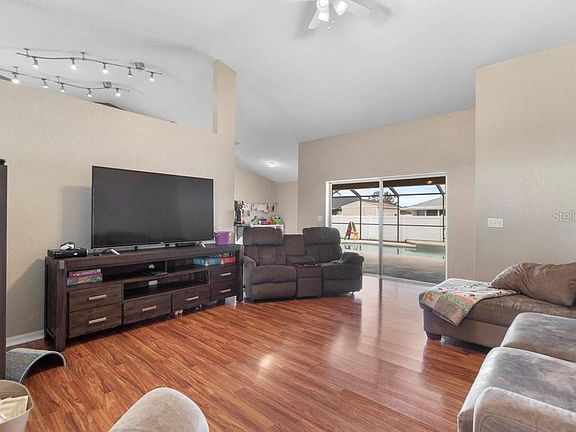 Contemporary POOL home in Reflections West. Open floor plan with split bedrooms, Great Room with separate dining room open to the kitchen with breakfast nook. Den/office/library could be 4th bedroom with an added closet. Spacious master bedroom with glamour bath - garden tub, separate shower and walk-in closet. Screened pool and porch, fenced yard and more. This home will have the roof replaced prior to closing. Conveniently located close to schools, shopping, recreational areas with easy access to the Polk Parkway and I4 East and West. Welcome home!