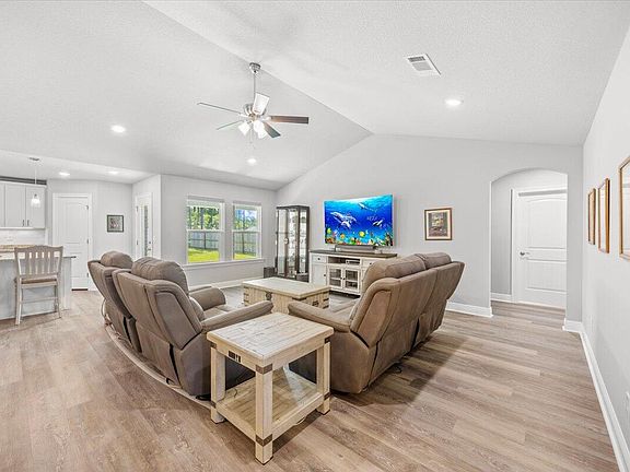 Recent upgrades include solid surface LVP flooring throughout all bedrooms, along with ceiling fans, subway tile kitchen backsplash, fenced-in backyard, and professionally epoxy-coated garage floor. All just 16 miles from the stunning white sands of Navarre Beach.