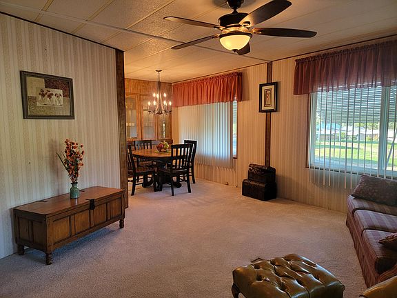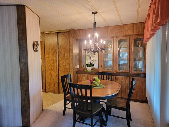 Nice older home on large lot with large side yard. The side area has artificial turf for easy care and drought resistant. Great location across from the park and near the mailboxes. 55 and older park. Home features a covered front porch and additional storage or craft room. Living and family room areas or great space a for home office. Built in china and curio cabinets. Kitchen has natural gas range and newer dishwasher. Lots of cabinet storage and counter space. Newer flooring in kitchen, laundry and master toilet area. Bedrooms are large. Master has a large tub/shower that has been modified for easier access with handicap bars installed. Newer windows and HVAC. Covered parking and shed for storage. Refrigerator, washer and dryer are included in sale. Back entry steps have been modified for easier accessibility. New back door. Location has several guest parking spaces nearby.