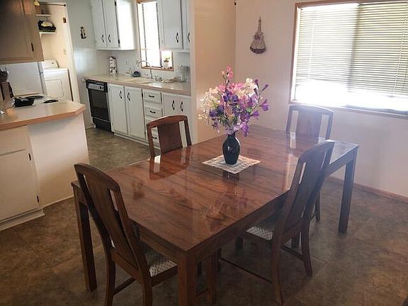 Great Buy for this split bdrm mobile.Roomy back yard with large shed. Vaulted ceiling. Lots of storage, covered deck area.Central air plus evap cooling. Large master bdrm. 3 bdrm can be used as den. Well kept mobile home park, close to lake. Priced to sell.