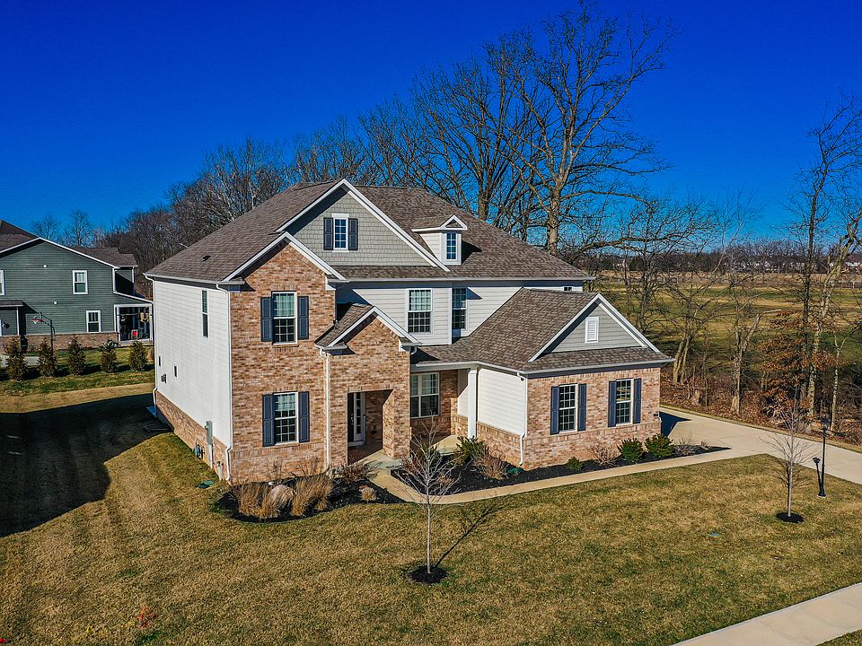 Step into pure luxury with this exquisite residence. On a secluded premium end lot you will be close to the Carmel Dad's Soccer field, walking distance to Carmel Middle School and West Park. In this meticulously designed floorplan is flooded with natural light in the grand foyer, gourmet kitchen, and master suite with the extra tandem windows. The perfect combination of the gas cook top and quartz countertops awaits a large meal for entertaining. Upstairs in the primary suite you will find a full tile bathroom and large walk in closet with California custom-built in storage. Theater screen, speakers, platform, and wet bar creates the perfect "movie night scene" with your friends and family in the basement. With immense space, the basement offers custom built-in cabinetry for storage. Your home will be secured with the built-in Ring camera system. Heading outside, is a landscaped oasis with a backyard full of space. Cutting-edge technology and appliances elevates every aspect of this rare Carmel property. Welcome to YOUR new home in the Woods at Shelborne!