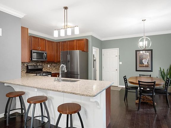 - RoomKitchenFeatures: Granite Counters, Breakfast Bar, Eat-in Kitchen, Custom Cabinetry