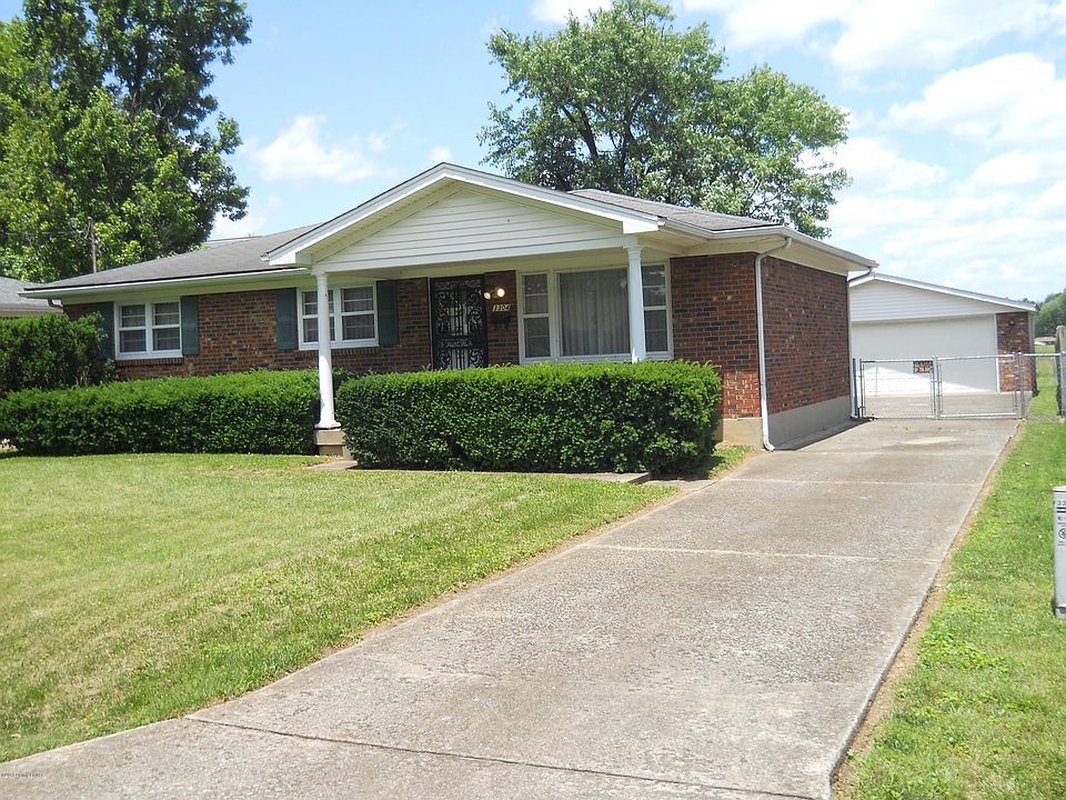 Spacious 3 Bedroom 1.5 bath brick ranch sitting on a large fence lot with a huge 2.5 car Garage, hardwood floors in all three bedrooms and hallway. Large eat-in Kitchen, and maintenance free vinyl soffits. Finished basement with a full Kitchen, a large entertainment area, plus a game room, or den. LG&E bills have averaged under 53.00 a month for the last 12 months. 1st showing will be an Open House on Sunday, August 18th from 1:00 until 3:00.