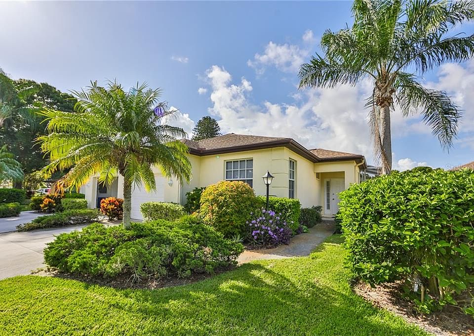 Taking Back Up Offers! 360 degree tour available in virtual tour link. This RARELY AVAILABLE villa with a POND AND FOUNTAIN VIEW is perfect for those who love a peaceful environment. Previous owner lived SMOKE FREE AND PET FREE, so great for those with allergies. The SPLIT FLOOR PLAN is light and bright and features both a Master Bedroom as well as a GUEST ENSUITE. Kitchen offers a breakfast bar and overlooks the living room and dining room. FULL SIZED washer and dryer (2015) are located in a separate closet in the kitchen which also offers extra storage space. The screened in patio overlooks a beautiful pond and is accessible from large sliding doors off of the living room. The MASTER BEDROOM with POND VIEWS has a walk in closet. The Master bath offers dual sinks and a walk in shower. The spacious guest ensuite bedroom features a large closet and a tub/shower combo. Air conditioner was replaced 2014. Being sold As-Is. Monthly dues include roof, exterior paint, cable, internet, pest control, pool, and ground maintenance. No age restrictions and pet friendly. Close to beaches, IMG, Sarasota, SCF, restaurants, library, Target, and Publix.