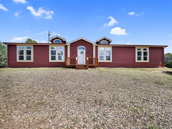 Awesome opportunity to add YOUR finishing touches to this 2,300+ square foot broker-owned manufactured home built in 2003 sitting at 7,400 feet just 20 minutes outside Trinidad, Colorado. This ranch style 3 bedroom/2 bath home is ready to go with brand new front and back decks, brand new front doors and back slider. Entire home has been professionally deep-cleaned from the ceilings down to the sub floors. Electric, septic and HVAC systems all inspected and serviced. Great layout with large living room, gas fireplace, dining area, kitchen with island and walk-in pantry, master bedroom suite with large full bath and laundry room. Plenty of closet space and ceiling fans throughout the home. Private dead end spur road with water tap, cistern and frost free spigot, electric and propane service all in place. Great views of Fishers Peak and the entire Raton Mesa. Two storage sheds included and plenty of room on level ground for any additional garages or outbuildings.