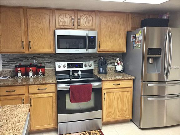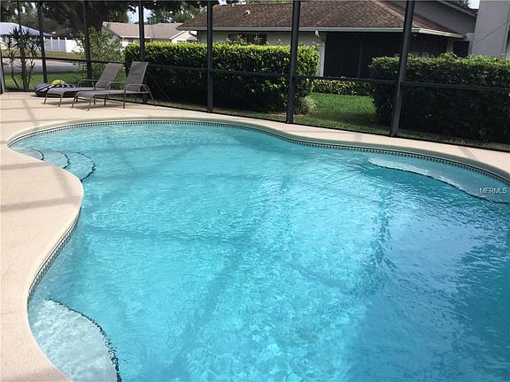 Come see this delightful pool home. This updated home is immaculate and has been well maintained. Ceramic tile is in all the right places. Come see the Remodeled kitchen with wood cabinets, stainless steel appliances and granite counters. Have your guests sit at the breakfast bar and have an iced tea while you cook dinner. Lounge on the spacious lanai or swim in the large freeform pool. The Master suite features a walk in closet and sliding glass doors to the lanai. The master bath features ; new tile in the shower, granite counter top and new lighting. The guest bath features ; a new vanity and a granite counter . Misc extras and upgrades include;Plantation shutters, New Roof - 1 year old, HVAC approx- 5 years, exterior painted- 2 years, landscape curbing , extra large driveway for extra parking, sprinkler system , gutters, pull down attic stairs, extra attic insulation with pest control, inside laundry room, newer light fixtures and ceiling fans, lanai painted -2 years, new garbage disposal ,brand new pool cleaner. Please do not let friendly small old dog " muffin" out while showing the property .