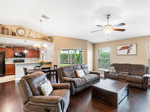 This pristine 3 bedroom, 2 bath home is located in the charming community of Cypress Pond Estates. This home is move in ready and lies within minutes of Ellenton Premium Outlets, I75 and 275. The interior boasts an open floor plan with tasteful wood/tile flooring throughout the living area and vaulted ceilings. Spacious kitchen with ample cabinetry accented by an attractive glass backsplash. A food pantry in the kitchen provides additional storage space for necessities. Access to a screened lanai from the living area has ample space for entertaining or just enjoying a morning cup of coffee. No back neighbors! Need to work from home? A quaint nook by the kitchen will become the perfect space for your desk. At the end of a long day retire to the bright, roomy master bedroom with walk-in closet and tranquil ensuite. All new window treatments and fresh paint throughout the home. Hurricane Shutters included. An attached two car garage and well-maintained landscaping complete the curb appeal of this lovely property. HOA fee also covers property lawn care and irrigation.