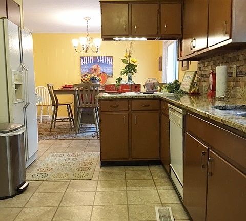 3 bedroom, 2 full bath brick home, living room plus family room, 2 car detached garage, paved driveway, granite counter top and stone back splash, small fenced area for dog, nice wood floors in living room and hall.