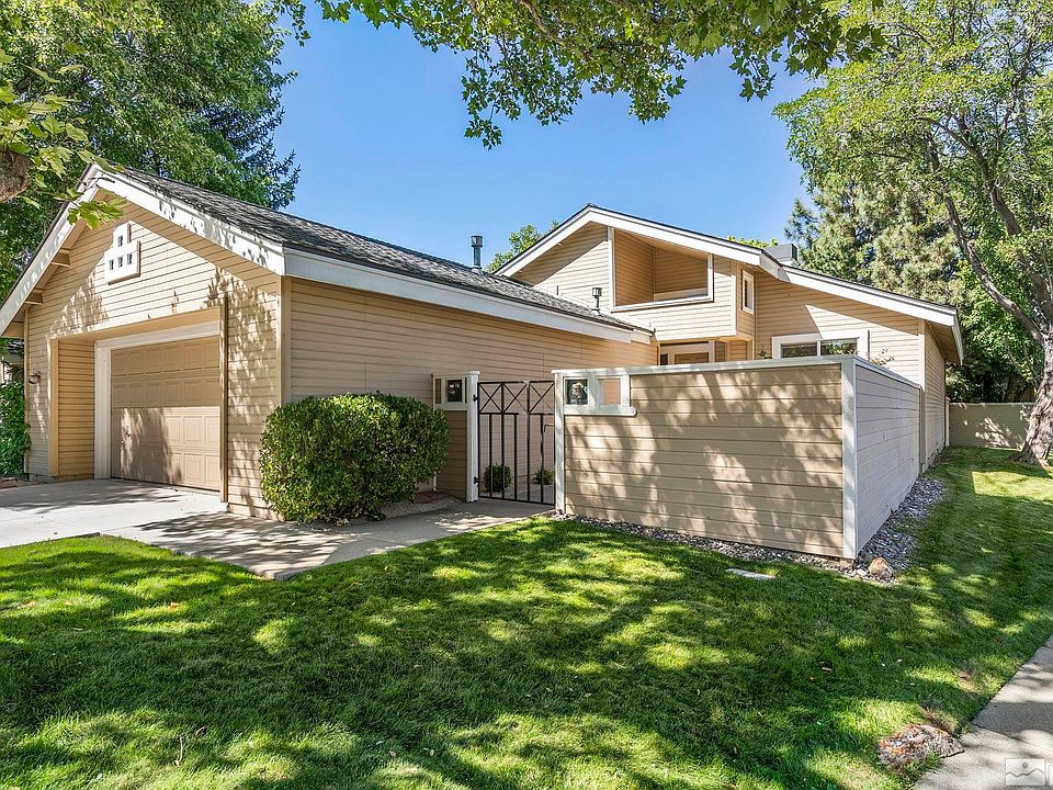 Charming, single story home situated on beautifully landscaped corner lot in desirable Alum Creek at Caughlin Ranch. Fabulous light, open floor plan with vaulted ceilings, and expansive windows. The sheltered front porch entrance welcomes you into the home where you will find a formal dining room, living room with cozy fireplace a spacious kitchen with breakfast nook overlooking the patio and gorgeous back garden. Wonderful Southwest Reno location., Updates include, furnace replaced in 2015, new exterior paint and cement driveway in 2017.Roof replaced in 2010.