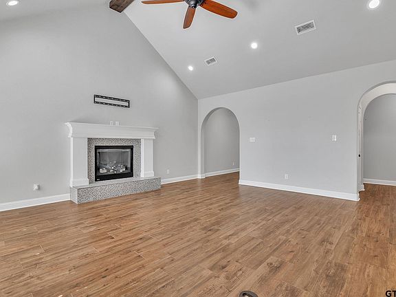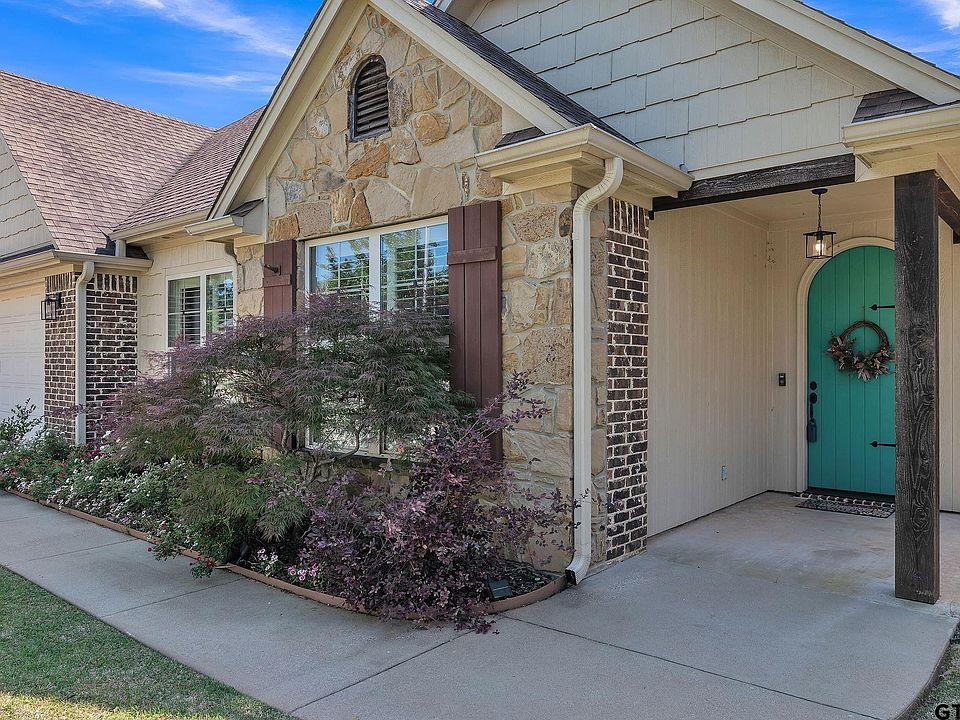 NEW PRICE IN THE SOUGHT-AFTER HOLLYBROOK COVE NEIGHBORHOOD! This delightful home epitomizes comfort and elegance. As you approach, the welcoming exterior, with its quaint rock façade and front porch, sets a warm tone. Step inside to discover an inviting living area, where natural light floods through large windows, highlighting the sophisticated design and cozy ambiance. High vaulted ceilings with exposed beams and a sleek fireplace add to the chic charm. The beautifully designed kitchen, featuring a walk-in pantry, boasts elegant light cabinetry, granite countertops, and a spacious central island, making it perfect for culinary enthusiasts and gatherings. Adjacent to the kitchen, a dining area offers a welcoming space for dinners with loved ones. The serene master suite presents a peaceful retreat, with a luxurious en-suite bathroom featuring double vanities, a jetted tub, and a separate shower. Additional bedrooms are generously sized and can easily serve as guest rooms, home offices, or personal gyms, tailored to your needs. Outside, the private backyard is a haven of relaxation, complete with a covered patio for al fresco dining and a sparkling swim spa for year-round enjoyment. The thoughtfully landscaped yard provides ample space for outdoor activities and tranquil moments. This Hollybrook Coves gem, with its blend of charm and modern amenities, is a perfect place to call home. Enjoy peace of mind with a powerful 22kW natural gas automatic generator, ensuring your home stays powered during any outage. This reliable system provides seamless backup electricity, automatically kicking in to keep your essential systems running, no matter the weather or circumstances. Experience the charm of a peaceful, beautifully maintained neighborhood filled with manicured gardens. For fitness enthusiasts, the Cargill Long Trail is just minutes away, offering the perfect setting for walking, running, or cycling right outside your door.