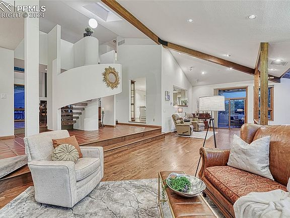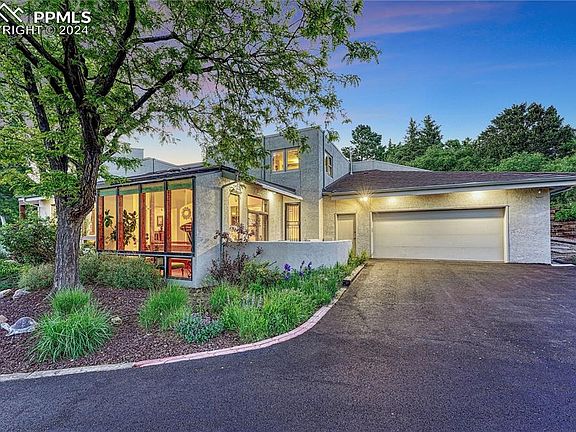 Can you imagine living in a Pristine Paradise kind of home, perched on the edge of the Country Club of Colorado’s golf course, w/views of the lake out your windows & from 1 of 4 private patios surrounding your home? Enjoy the stunning 365-degree views while sitting on your private bench (at the upper end of your property) then stroll to the club (600ft) to dine, exercise, have a spa day, swim, or sailboat/kayak on the lake.Imagine enjoying the spectacular 4th of July display from your deck with music & fireworks filling the air. Imagine each day hearing nothing but birds singing & the Will Rogers Shrine of the Sun bells floating through the air as you take in the Cheyenne Mtn. views from every room on the south side of your home via the floor-to-ceiling windows. This home is tucked away on the end of a quiet cul-de-sac & perfectly positioned to see the gorgeous sunrises each morning & sunsets against the mountain range every evening. Your most difficult decision will be,“On which of the 4 patios do you choose to take in these gorgeous surroundings?” Some of the Uncommon Extras in this Custom-built home are a circular staircase w/ coordinating interior & exterior circular walls, a solarium w/floor to ceiling windows making you feel as though the lush trees & ever-changing color of perennials or autumn trees are a part of your interior as well, a loft office w/wet bar overlooking the grounds with a Cheyenne Mtn. view (enjoy the same views from your Master bedroom suite). To provide every convenience, your laundry room has built-in custom cabinetry, sink & Dry/Steam Cleaning Closet (Wi-Fi enabled) to care for your finest garments. Thermador & Bosch Appliances (Wi-Fi enabled) Brazilian quartz in kitchen, powder room & laundry room, wine fridge & custom cabinetry. DECRA metal roof (2018) new driveway (6/2022).The complete list of extensive/expensive updates cannot fit into this limited space but will be available for you when you “Come take a look inside!”