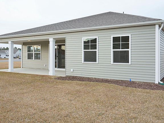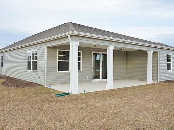 Litchfield model with full front porch & 9' x 24' rear covered porch on corner lot next to open space & views of pond. Great floor plan with 3 bedroom, 2 bath with a Flex room for office, workout, guest. Ceramic floors in baths & laundry, & hardwood in main living areas. Separate laundry room & built in drop zone for shoes & jackets off oversized garage. Lots of closet space. Great room open to kitchen & dining with volume ceilings throughout this home. Kitchen offers walk in pantry, large granite counters & table height island for entertaining. His and hers walk in closets in the master suite with trey ceiling & spacious master bath with 5' walk in shower. HOA includes landscaping, irrigation, pool, clubhouse, tennis, billiard, shuffle board, annual power washing, 1/4'ly pest control.