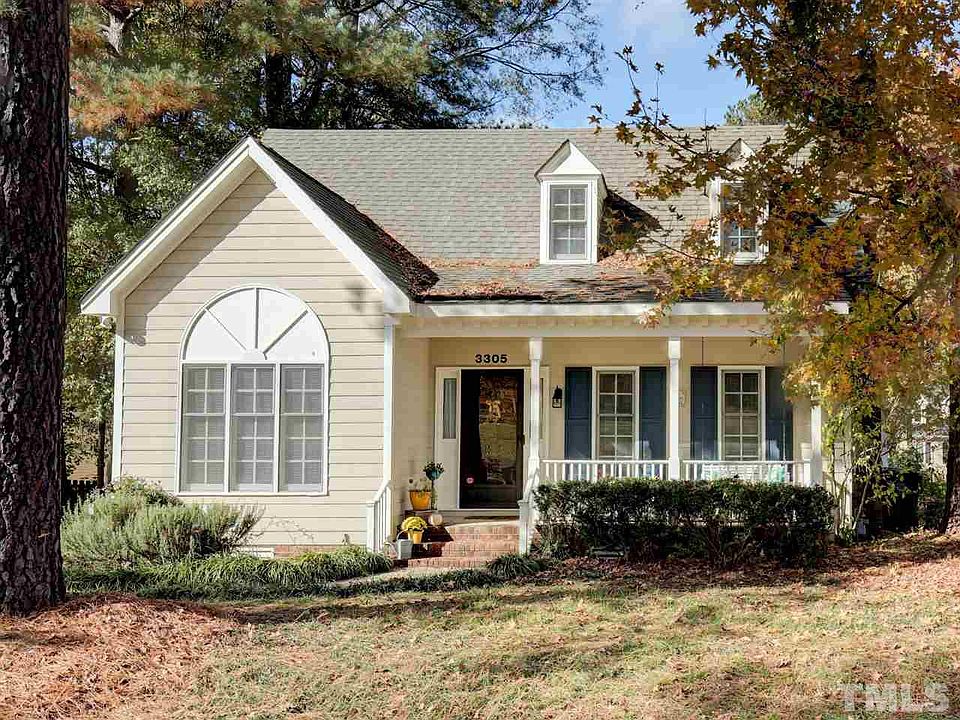 Charming cape cod in desirable Broadlands! Large driveway space to accommodate side by side parking. Welcoming front porch overlooking green space. Step down family room features raised hearth masonry fireplace. First floor owners suite with vaulted ceiling and ensuite bath. Spacious dining area overlooks back yard and has access to deck. Two secondary bedrooms upstairs and full bath. TONS of unfinished storage space on second floor. Community salt water pool. Minutes to 440 and Downtown.