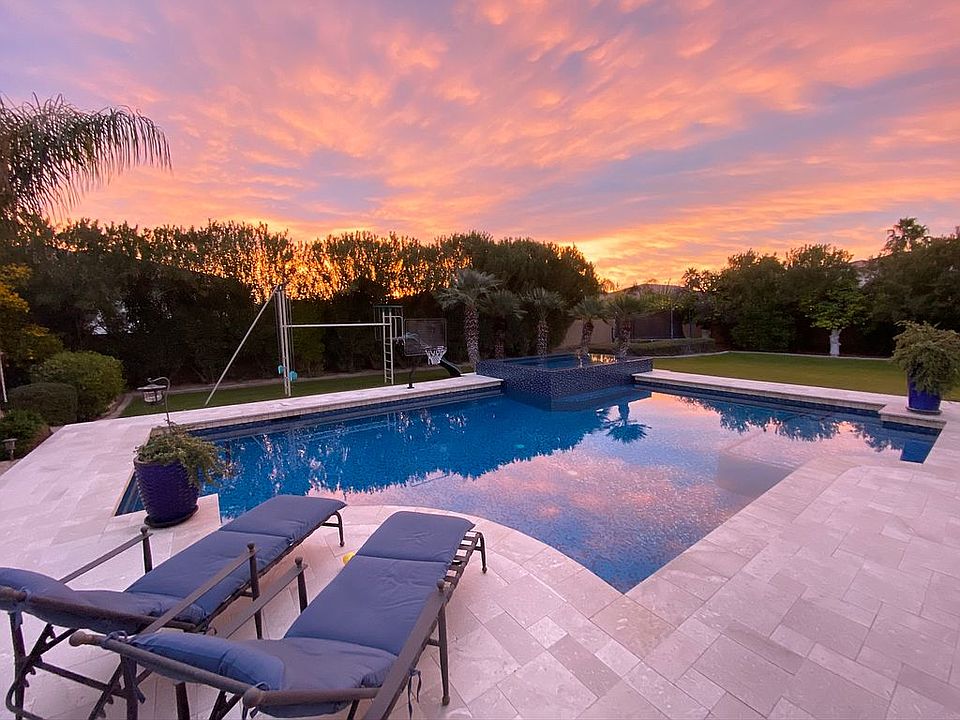Fully Furnished for $5,200/month. Luxurious home recently updated with resort-style, large backyard, all-tile pool with swim spa and custom BBQ and wood-fired pizza oven. Spacious kitchen and family room with white cabinets and stainless steel appliances. Plantation shutters throughout the house. Entire interior recently painted. Split floorplan with large master suite. "Mancave" TV room. Soccer field back yard with trampoline, high quality play structure, tree house. Basketball hoop in driveway and in pool. Lots of fun for kids and adults. Over 20 citrus trees for unlimited juice all winter. Gated community with tennis courts, park, playground, entertainment ramada, basketball court, etc. More inside photos coming soon. No smoking. No pets. All utilities and lawn service by renter. Pool service by owner.