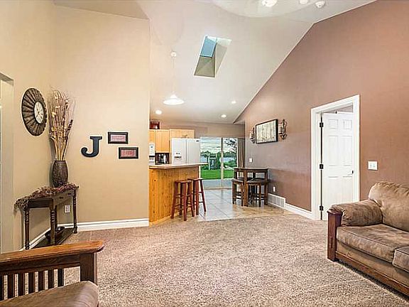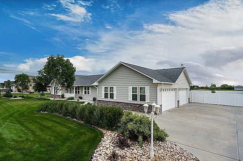 RARE FIND! One level 4 bedroom home on over 1 acre w/ a 4 car attached finished garage! Room for a shop. Completely fenced, fully landscaped w/ a well. Master suite, surround sound, tile in bathrooms. Large patio off dining room. Fun swingset play area.