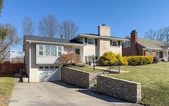 Nestled in the charming Barbourmeade neighborhood of Louisville, Kentucky, 3305 Hillvale Road is a beautifully maintained split-level home that harmoniously blends traditional elegance with contemporary upgrades. Built in 1964, this residence offers four bedrooms, two bathrooms, and thoughtfully designed living spaces with a warm and inviting atmosphere. The inviting main level features hardwood flooring throughout, with a bright and welcoming living room. The dining area is well-lit, creating an ideal space for meals and gatherings. Adjacent is a fully renovated kitchen, outfitted with white cabinetry, granite countertops, stainless steel appliances, and a central island with seating—ideal for casual dining and entertaining. The second floor includes three well-appointed bedrooms, each o