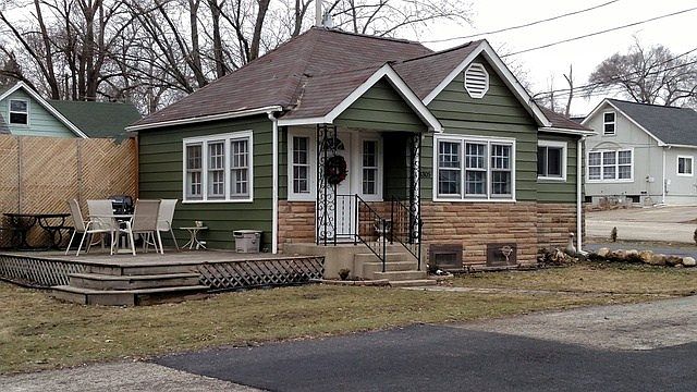 Home sweet home! Tastefully decorated cottage style property is move-in ready! Recently painted exterior. Easy care laminate flooring and new carpet in bedroom. Kitchen features convenient pass-thru window. All appliances stay, micro is new. Large main living area with plenty of windows is welcoming and bright. Seller is willing to include TV. Plumbing and electrical was updated approx 10 years ago. Laundry and utilities are tucked out of the way in unfinished partial basement Washer/dryer are included and the washer is new. You're own yard is graced by mature trees and a nice deck to entertain on. Detached 2-car garage is an added plus, it is heated and has room to spare with pull down stairs to a floored loft for plenty of storage. Overhead door is new and garage apron is newly paved. Additional newly paved parking pad located right by the house. Enjoy single family living with lake rights and all the amenities that this area has to offer! Utilities are budget friendly too!