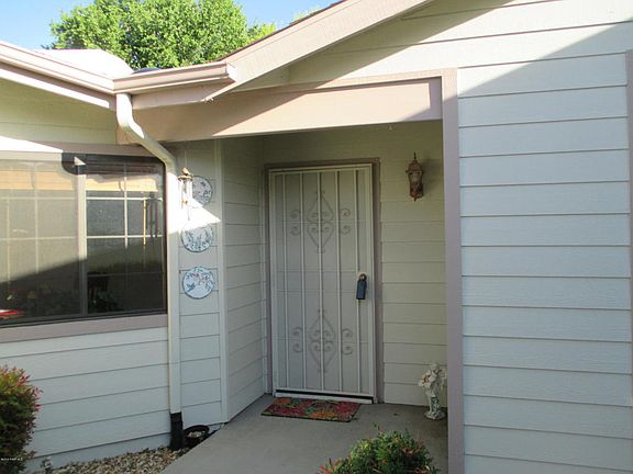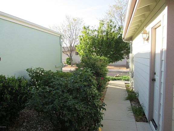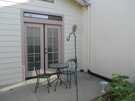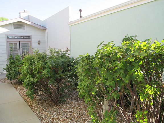 One owner, well maintained home. Welcoming front yard/courtyard w/lots of rose bushes. Open floor plan with skylights, vaulted ceilings, great room/living/dining combo. Cozy fireplace, warm laminate wood-like flooring in living room area, tile everywhere else that has been freshly Stanley Steemered! French doors in great room lead to outside sitting area at front of home overlooking rose garden. Breakfast bar & pantry in kitchen. Large master suite, bath w/double sinks, grab bars at shower & commode, separate tub & shower. Nice sized guest room w/exterior french doors to patio and back, fully fenced yard. Home backs to wash/treed area with access to area two doors down. Guest bath also with double sinks and skylight. Tankless water heater and new furnace in 2013. Cute and Cozy!