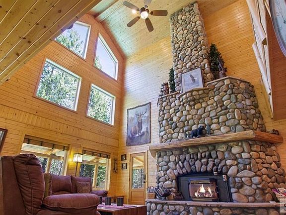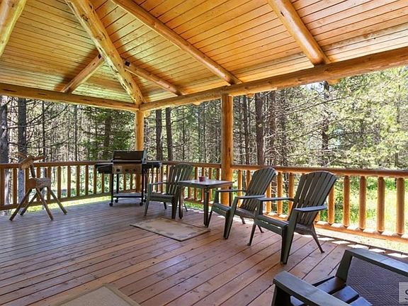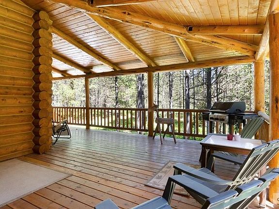 PRIVACY - 2.02 ACRES - VACATION RENTAL - MASSIVE RIVER ROCK FIREPLACE w/PROPANE INSERT - $15,000 NEW FLOORING CREDIT - Located on over 2 wooded acres, backing to the 1400 acre Eagle Ridge Ranch, this cabin features all pine tongue and groove interior, 4 bedrooms, 3 1/2 bathrooms, large vaulted great room, kitchen with granite counters, loft, PLUS a huge bonus room over the attached 2 car garage. Wrap around covered decks keeps the snow away from the cabin and provides incredible outdoor space to enjoy. Wait until you see the two story river rock fireplace with propane insert along with the floor to ceiling windows. Fireplace was originally wood burning and could be converted back if desired. Easy year round access from the paved Kilgore Rd. BONUS: Adjacent 3.33 acre building lot also available - $150,000. Buy both and SAVE! Call listing agent for more information or to schedule your showing appointment. Be sure to check out the 3D walk thru tour!