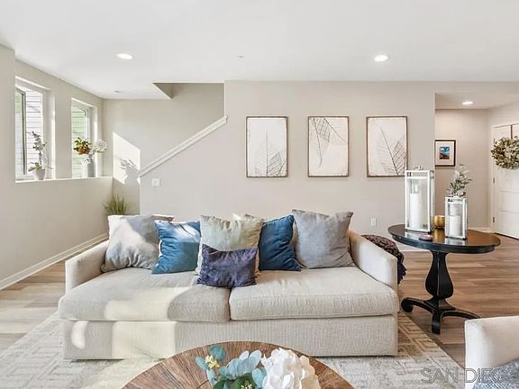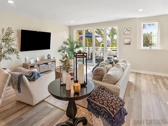 Rarely available beautiful townhome just 1 block from the sand and 2 blocks from the heart of Carlsbad Village. Welcome home to your modern beach house! Featuring luxury touches including SS appliances, waterfall edged island, and 3 outdoor decks. The main living area highlights a large family room, fabulous chefs kitchen, dining room, 1/2 bath and large balcony with a direct water view! From the main living space, travel to the top floor to enjoy your luxurious primary bedroom/bath and private balcony with ocean view that encompasses the entire level. Entry floor features a large guest room with french doors leading to a private patio, ensuite bath, additional flex space perfect for a gym or an office as well as laundry closet complete with storage.