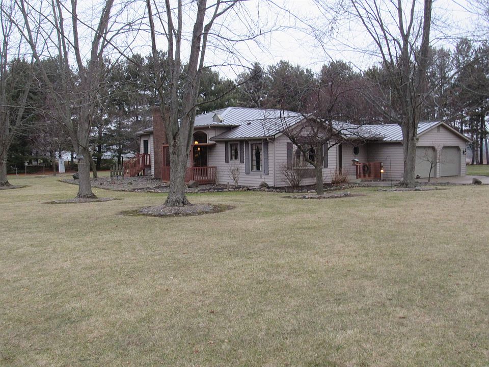 12.77 landscaped acres with pond is the setting for this 3 bedroom split level. There is a basement that contains a recreation area, 2nd kitchen, 1/2 bath and storage. The main floor has 2 full baths, oak floors in the eat in kitchen and dining area. The kitchen has Granit counter tops. In addition to the attached 2 car garage, there is an additional garage for all those necessary toys. The home has gas fired forced air furnace with central air and a whole home generator. There is a one year warranty for peace of mind. This home and property is well maintained and move in ready.