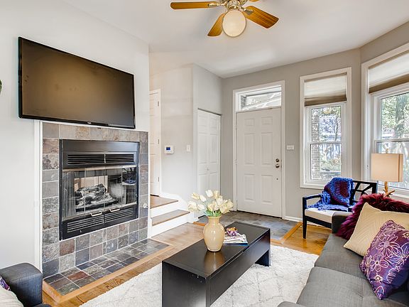 Super sunny 3 bed, 2.5 bath townhome on one of the best blocks in central Lakeview. Secure, gated community with an adorable shared courtyard. Bright, warm living room with a slate dual fireplace opens up into a large dining space and half bath. Kitchen has good counter and cabinet space, newer appliances and bonus breakfast nook that leads to a private patio. Second level has 2 large bedrooms w/good closets and big bathroom with separate tub/shower and dual sink vanity. Lower level has a full bath and third bedroom that could easily be used as a family room/den/office, plus new W/D and extra storage space. Garage parking included. Amazing location - easy stroll to Belmont stop, Southport Corridor, Wrigley, the lakefront and tons of great coffee shops and restaurants.