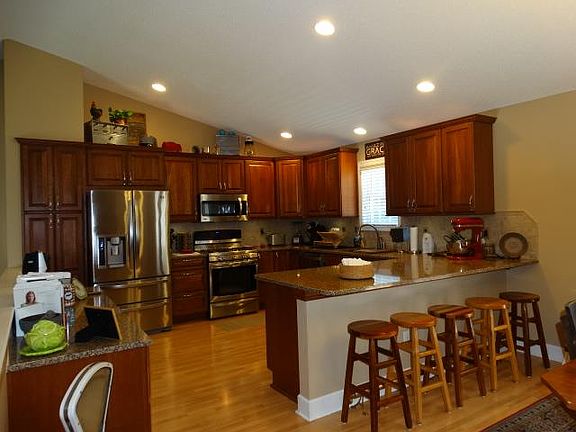 Gorgeous front to back split home with lots of updates! The home features 4 bedrooms, 3 full baths and a 4 car garage!! Beautiful open kitchen has quartz counters, pantry and tons of cabinet and prep space. The formal living room has vaulted ceilings and a fireplace, spacious master suite, the master bath has a double vanity, separate shower and jetted tub, large family room downstairs along with the 4th bedroom and bath. Outside is a covered deck and patio, pretty landscaping and a fenced yard with lots of trees!