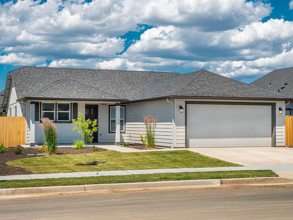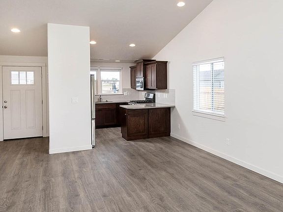 Beautiful ranch home with extended front porch, covered back patio with a mountain view! This lightly lived in home has a perfect blend of modern convenience and classic appeal. The home is on a corner lot and can be more than it appears with vaulted ceilings spanning the dining room and ample quartz counter space with upgraded cabinets. There is a gas fireplace in the great room and central A/C for the summers. The large primary suite has two spacious closets and ensuite with dual vanity. The home is fully fenced and landscaped with sprinklers. The garage has a four-foot extension and comes with a painted floor. Conveniently located with easy access to schools, shopping and recreational facilities. Included is a newer refrigerator and washer dryer. This home is turnkey and ready today.