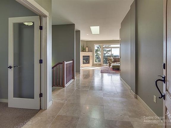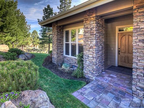 This quality built contemporary home in Rivers Edge Village is situated on a .37 acre lot w/views from Pilot Butte to Smith Rock overlooking the 3rd hole at Rivers Edge. Main level living in this light & bright great room floor plan, daylight basement includes a bonus room w/bar, sink & D/W...Quality features throughout including ICF, Travertine, high end ss appliances, his & her closets & vanities, radiant heat & more. Home backs up to Deschutes River trail yet is only minutes to downtown Bend.