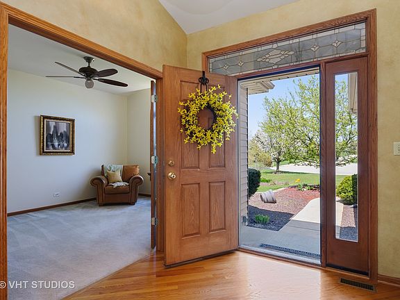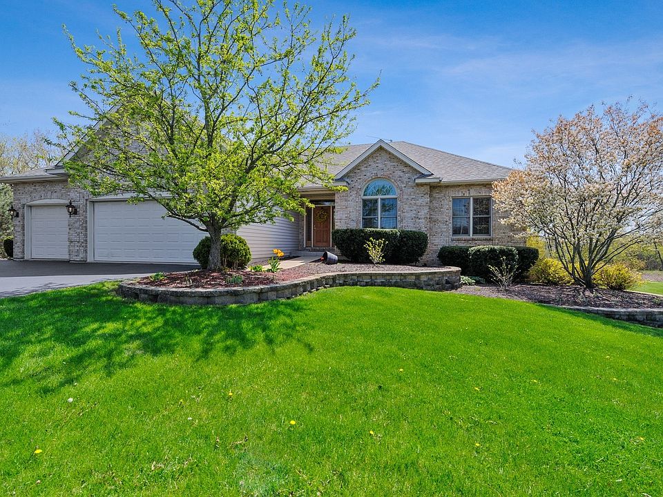 METICULOUS RANCH SITUATED ON 2 PEACEFUL ACRES WITH BEAUTIFUL WOODED VIEWS... Elevated ceilings, skylights, crown moldings and hardwoods introduce this custom KLM ranch in The Preserve of Spring Grove. The home offers a thoughtful layout with spacious foyer and living room featuring a cozy fireplace that opens to the dining room and deck overlooking a lush backyard. The updated kitchen is equipped with plenty of cabinetry, a sharp tile backsplash, granite counters with breakfast bar and spacious eating area that leads into the three season room. The home currently offers 2 bedrooms and a den that can easily be converted back to a 3rd bedroom. The master suite features a nice size walk-in closet and master bath equipped with a double sink vanity, separate shower and jetted tub. The lower level offers a full walkout basement with tall ceilings and roughed in bath-ready for you to make your own. The home is quietly tucked away at the end of a cul-de-sac and offers great one level living!