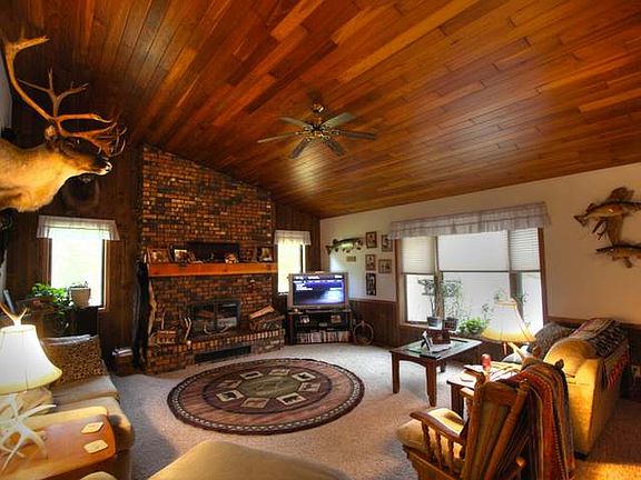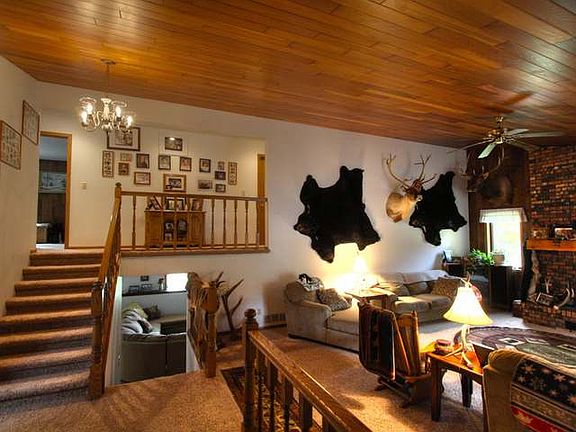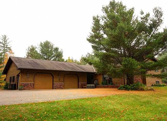 This Conover WI home for sale has a blacktop driveway, large yard, attractive landscaping, and a covered entry to welcome you. Inside you'll find a spacious foyer and large entry closet. There are four bedrooms, three and one half bathrooms, 2 fireplaces and a vaulted ceiling with tongue and groove cedar in the living room. The main level includes a generously sized kitchen and dining space with pantry closet, a half bath and back hall/ mud room near the entrance from the attached garage. The master bedroom includes double closets, a brick, fireplace and private master bath with large vanity and a beautiful whirlpool tub! Natural light fills the lower level family room space where there are sliding glass doors to walk outside. This home is ideally designed with a functional layout. The attached garage includes space for two vehicles and loads of shop/utility space. Outside there's approx 9 acres of woods and open spaces to explore.