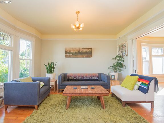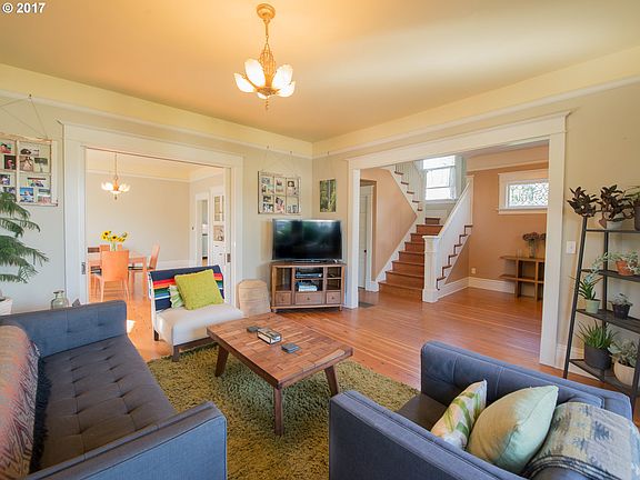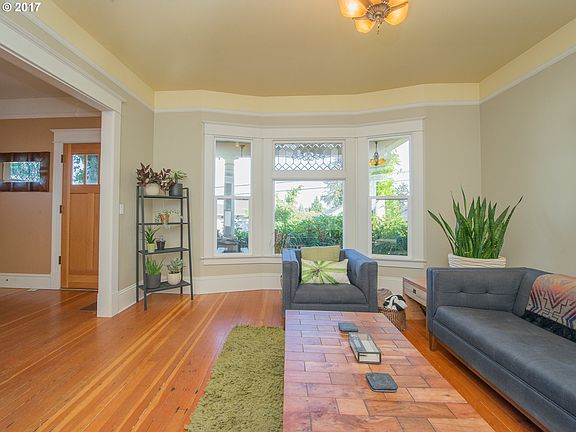 Beautiful remodeled Old Portland style home that sits high above the street. Updated mechanicals throughout along with tons of vintage charm, you won't find a better Foursquare than this. High ceilings with open flowing living area. Large kitchen with bar. Yard, porch, & patio perfect for entertaining. Quite neighborhood centrally located for walking & biking to the hot SE shops & restaurants. Central air.