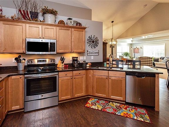 Stunning townhome with open floor plan and vaulted ceilings! Spacious ranch with large living area double tray ceiling and fireplace, dining and kitchen with granite countertops, stainless steel appliances and pantry. Flex space for office or sitting area. Master suite boasts lots of natural light, bathroom with double vanity, walk-in shower and huge walk in closet. Laundry room attached to drop-in office or large walk in coat closet. All appliances are included. Located at the edge of Grimes, Johnston Schools, and close to interstate access, restaurants, golf, walking/biking trails, and shopping. Put this home at the top of your list! All information obtained from Seller and public records.