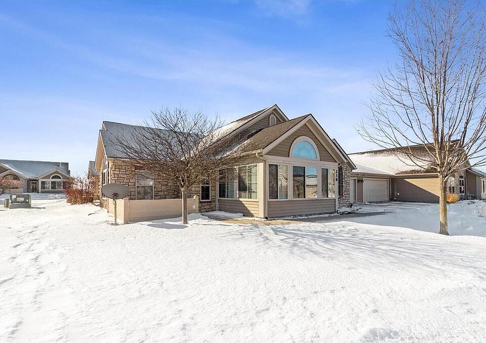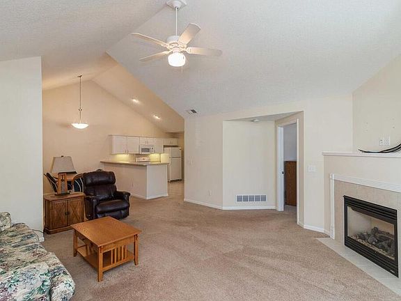 Highly sought-after ranch townhome with zero entry from front entrance and garage. Vaulted ceilings throughout, including both bedrooms, living room, dining area and 4 season room. Large master with 3/4 bath and walk-in closet. 2nd bedroom on opposite side of home is equally large. Huge kitchen with white cabinetry and tons of counterspace and storage. Both bathrooms have large vanities and walk-in showers with seats. The large sunroom is the perfect place to relax, read or work. Circle-top transom window over the doorway allows light to flow into the living room. Gas fireplace in living room. Large laundry room with large storage closet. Garage has pull-down stairs for attic access. This HOA offers community clubhouse and pool.