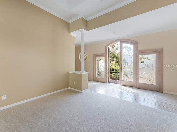 One or more photo(s) has been virtually staged. An idyllic mid-key location provides the perfect blend of ambiance and convenience to a world of local attractions for this 3BR plus office home in esteemed Bay Isles. Shade trees and mature landscaping frame the façade and lead you to the dramatic entryway, where custom-etched waves adorn the stately glass double doors and sidelights. Welcome inside to a bright and spacious interior created by soaring ceilings, expansive rooms and beautiful windows throughout. Delight in an aura of openness in the centerpiece living room/dining room, which has 13' ceilings, a multi-windowed entryway and double sliders opening to the private pool and outdoor deck entertaining area with summer kitchen. The spacious eat-in kitchen is wonderful for the chef and entertainer, with cathedral ceilings, stainless steel appliances, cabinets with glass displays, and double-tiered countertops. The split plan design separates the master suite from the guest bedrooms and family areas, as the master boasts a double-door entry, sliders to the pool, a custom walk-in closet and large master bath with double vanities. Additional features include a utility room with Bosch washer & dryer, a 2-car garage and 2-zone A/C system. Bay Isles offers residents an array of exceptional amenities, including 2 guard gates, 5 acres of Gulf-front beach club with deeded beach access and recreational facilities, and miles of walking and bike paths. Longboat Key Golf & Tennis Country Club membership and Harbourside Moorings deepwater slips are available.