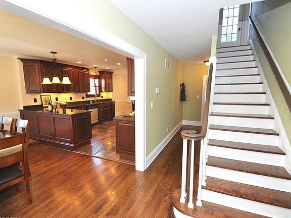 Gorgeous renovated Fernway colonial is ready for you to move right in. Fully renovated in 2012 and offering an open feel throughout the first floor with beautiful open kitchen and dining space with loads of work space on granite counters and stainless appliances. Kitchen features a charming breakfast nook overlooking the back yard and stamped patio area...perfect for al fresco dining. Gleaming hardwood floors greet you in the foyer and lead to the large living room with wood burning fireplace with gas logs that connects to the light-filled family room. A large powder room and laundry room complete the first floor. Gracious staircase leads to the second floor with glass paneled door at the top that opens to the large deck overlooking the back yard...a great spot for an evening glass of wine or morning coffee. Generous master suite with walk-in closet and en-suite bath featuring tiled shower, soaking tub, double vanities, and storage shelving. Two additional bedrooms and lovely hall bath with subway tiled shower and pedestal sink. Third floor provides an additional two spacious bedrooms, full bath with clawfoot tub and cedar closet. Lower level has finished recreation room and storage. Central air, newer systems including electrical and HVAC. Newer windows throughout. Updated PEX plumbing. Close to all the best of Shaker..parks, schools, Shaker Square, coffee shops and more.