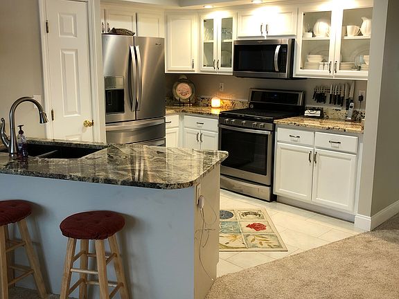 Completely updated with all new appliances including washer and dryer. Also new furnace, air conditioner and hot water heater. New carpet and tile throughout. Kitchen cabinets and bathroom cabinets painted white. Many other updates you must see to appreciate. The two car garage has also been updated with paint and cabinets that add to the shelves that were already here for plenty of storage. All new doors and blinds throughout along with a new screen for patio door. This condo is move in ready with updates completed so all you have to do is enjoy your new home. Please note that first twenty pictures are current, last 33 are prior owners before updates.